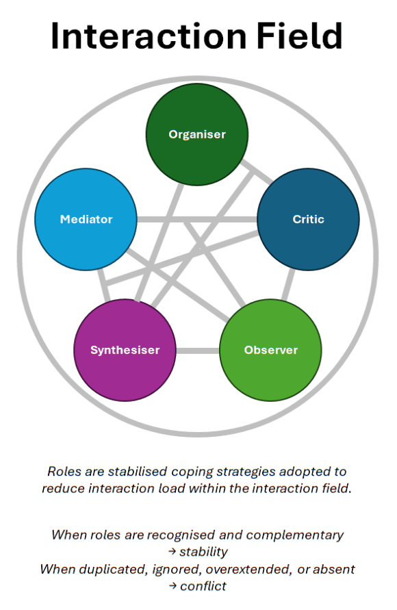 This article proposes a different way of understanding what is happening beneath the surface of group behaviour. It suggests that what we commonly call “roles” are not job titles or personality traits, but stabilised coping strategies that people adopt in order to manage the rising complexity of interacting within a group.
